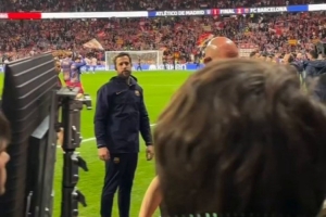 巴萨中场加维此役替补出场,赛后他将自己的球衣送给场边的一位女球迷,后者欢呼雀跃。