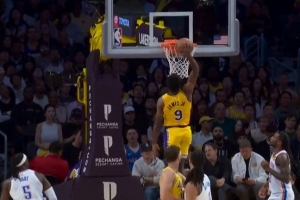 詹姆斯伤退湖人不敌老鹰